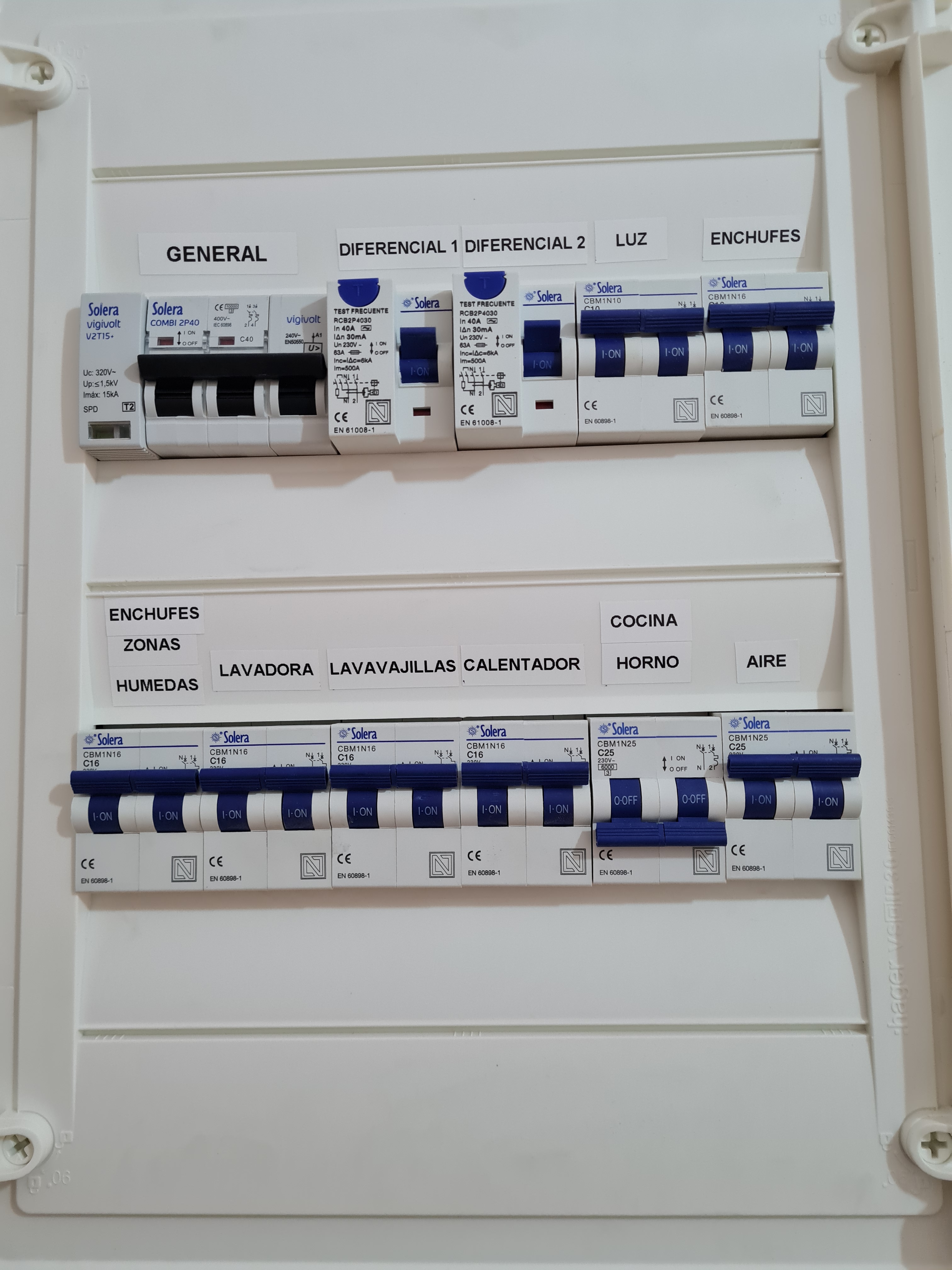 - Desde el reglamento electrónico nos indican los circuitos mínimos, el calibre de magnetotérmicos y de diferenciales y en ello nos basamos para realizar el montaje del cuadro de una vivienda.